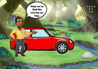 A businessman lost his car key in the forest here where he came to spend the day off. It looks like he just went straight there from work for he was still on his working attire. What really happened to him, you don’t know and don’t care, but you are going to help him though for he seems to be in real distress.