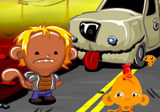 A monkey operative was sent to monkey planet again for they detected stress signals there. That planet have been completely invaded as it looks, or it could be that the mini-monkeys kept multiplying and that’s why the job is never done there. The location was in a desert somewhere and there were two monkey adventurers there and they were of course stressing with them mini-monkeys ruining their drive through the arid landscape.