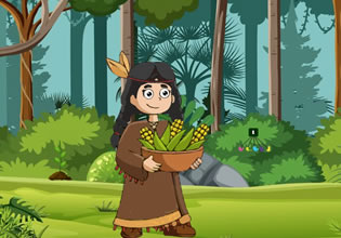 Tribe Mother Locating Toddler from Big Escape Games places you in a sunlit meadow surrounded by tall corn stalks.