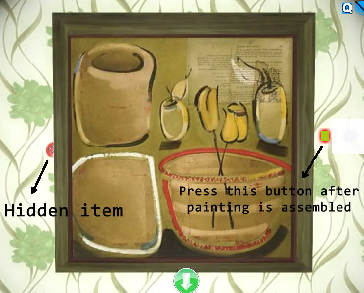 2/ it didn’t open anything but a “safe” appears on the wall next tot painting and I could open it by clicking on. I successfully finished the game :-)